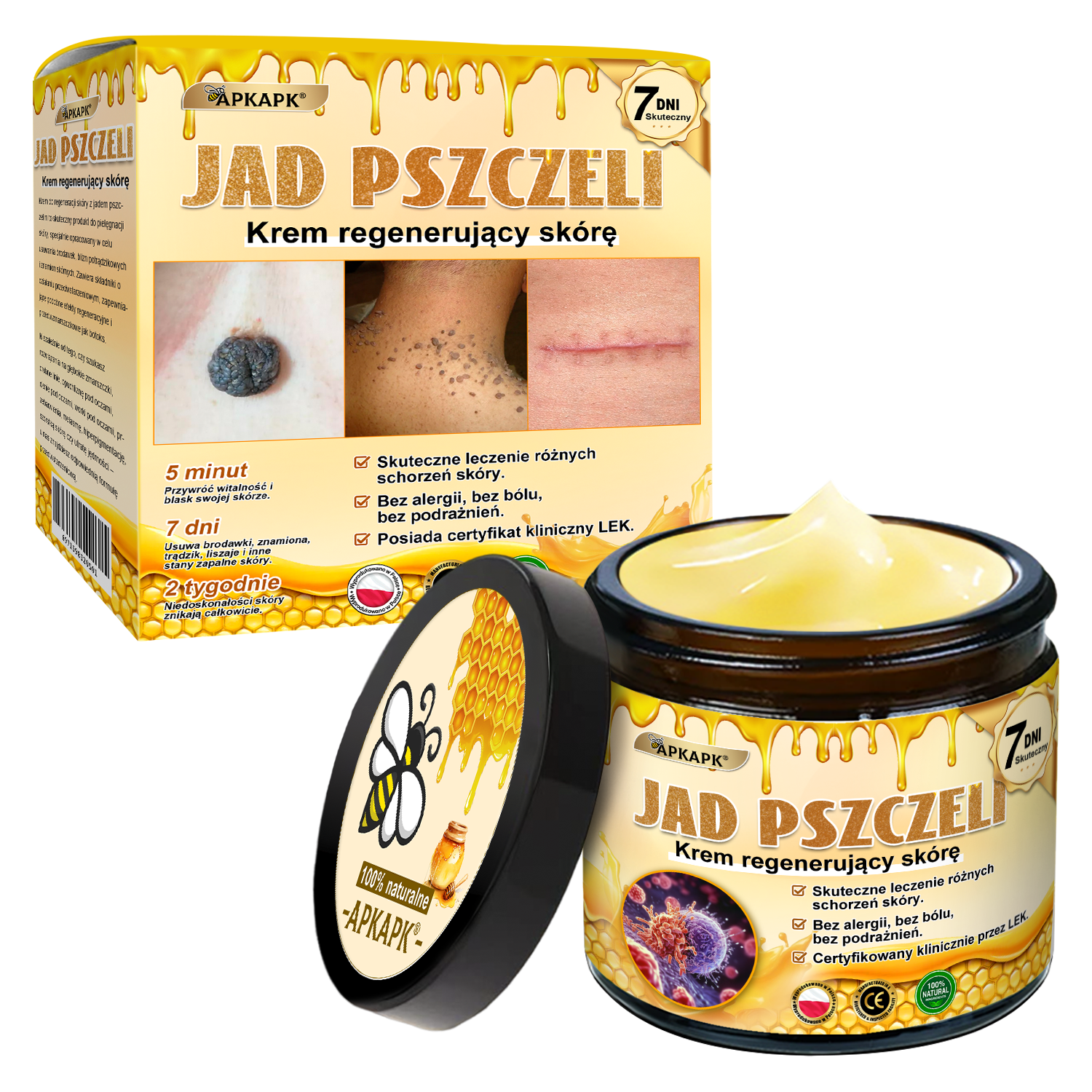 Klinicznie testowany przez polskich dermatologów, krem regenerujący skórę z jadem pszczelim 𝐀𝐏𝐊𝐀𝐏𝐊® może już w ciągu 7 dni pomóc zmniejszyć suchość, stany zapalne, swędzenie oraz widoczne oznaki starzenia się skóry.